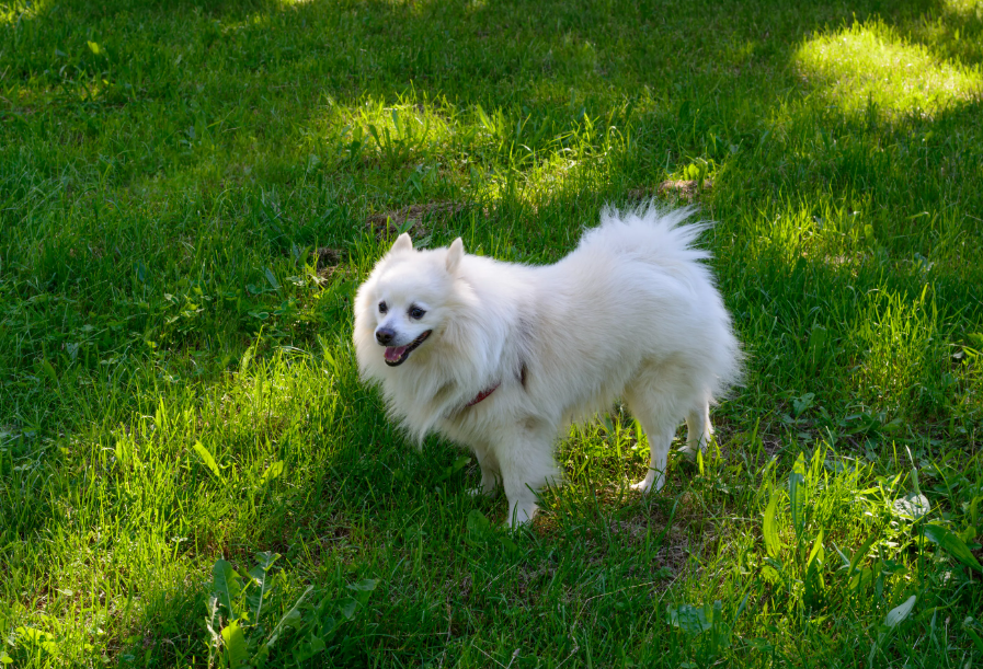 Эта порода тоже бывает белой. Ее шерсть отличается густотой, но при этом на ней не бывает колтунов. Собаке не требуется вычесывание, потому что плотный подшерсток не позволяет волосам прилегать к коже. Померанцы не линяют, да и часто купать их не требуется, чтобы их кожа не стала сухая.