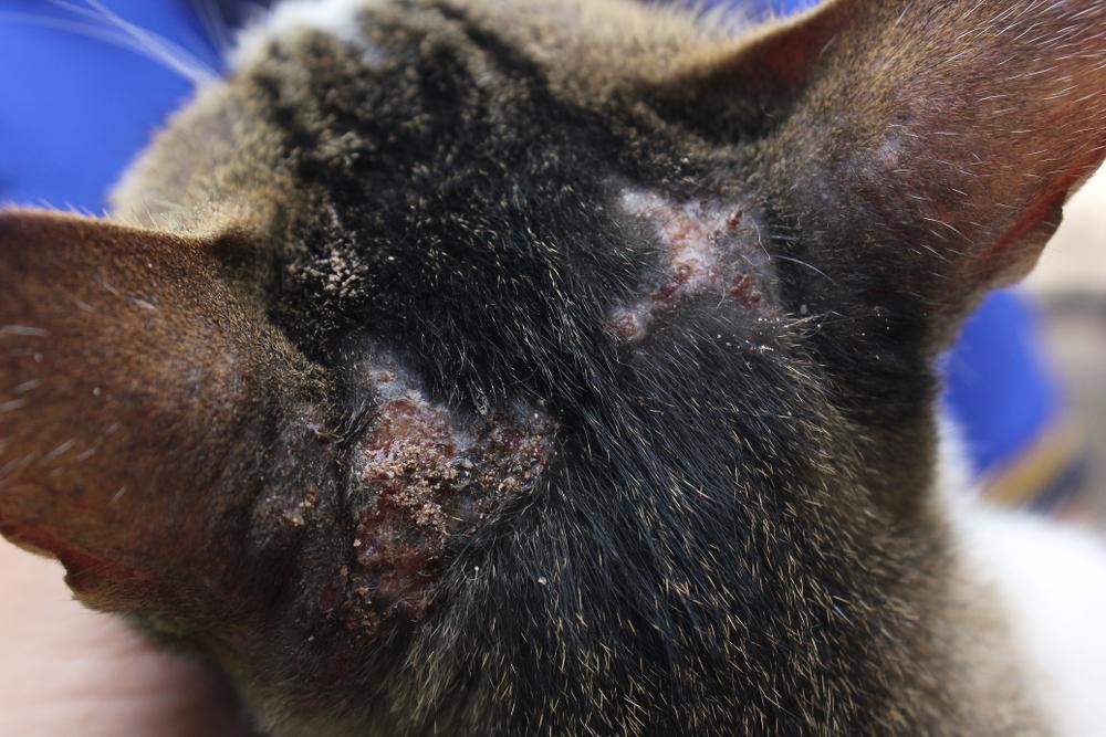 - При постоянном расчесывании питомцем пораженного участка будет происходить заражение более глубоких слоев эпидермиса через поверхностные раны от когтей кошки.