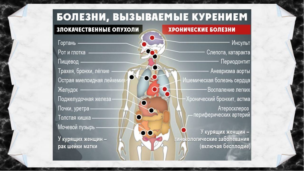 - Постоянное вдыхание табачного дыма значительно увеличивает риск развития рака легких.