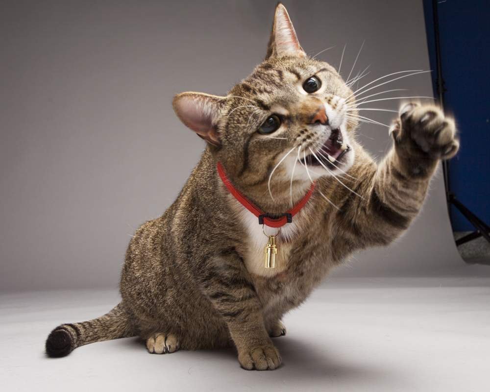 - Отвлечение. Если кошка находиться в состоянии «охоты», пытаясь напасть на владельца, укусить или вцепиться когтями, необходимо постараться отлечь любимца при помощи звуков. Не стоит пугать любимца громкими звуками, а вот звук погремушки или колокольчика – отличный вариант.