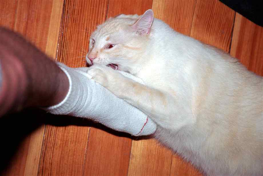 Если не реагировать на укусы кота за ноги, такое поведение становится для него нормой