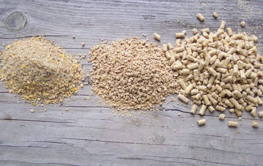 - измельчённые гранулы корма.