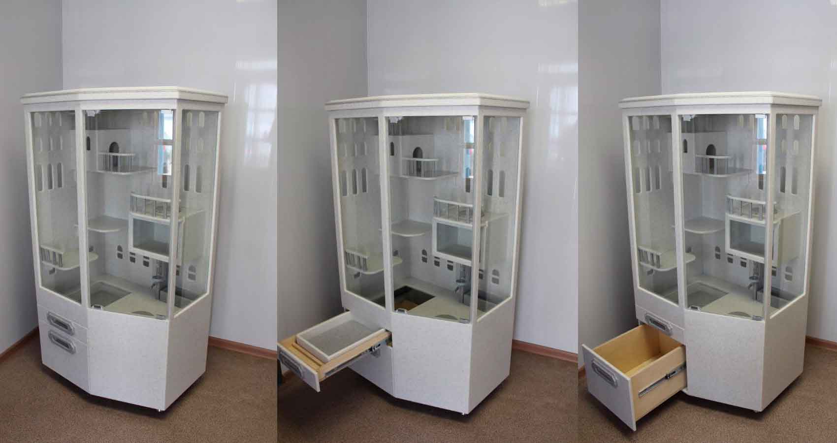 Содержание шиншиллы в домашних условиях является не менее популярным, чем содержание морской свинки. В первую очередь для содержания шиншиллы потребуется просторная клетка. Лучше, если клетка будет башенного типа. Оптимальным решением в таком случае станет витрина для шиншиллы, которая будет отличным домом для зверька и хорошо впишется в домашний интерьер. Витрина для шиншиллы удовлетворит все потребности грызуна, в ней есть домик, лесенки, этажи, балкончики, беговое колесо и прочие игрушки. К тому же проводить уборку в такой витрине еще проще, чем в клетке.
