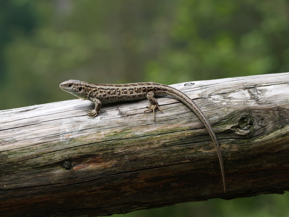 Прыткая ящерица (Lacerta agilis) – небольшая ящерица длиной до 115 мм с хвостом, в полтора-два раза длиннее тела. Молодые ящерицы сверху буровато-серые или коричневые с одной или двумя проходящими вдоль хребта более темными полосами, окаймленными узкими светлыми линиями. По мере роста животного темные спинные полосы распадаются на отдельные неправильной формы пятна, расположенные в один или два параллельных ряда. На боках тела обычно хорошо выраженные ряды светлых в темной окантовке пятен. Общая окраска тела самцов варьирует в пределах желтовато-бурой, салатовой, зеленоватой и ярко-зеленой, самок — желтовато-коричневой, коричневой, буровато-серой и реже — зеленой. Нижняя сторона зеленоватая, желтоватая или голубоватая, обычно с мелкими темными пятнами. В период размножения и осенью зеленые тона самцов становятся более яркими.