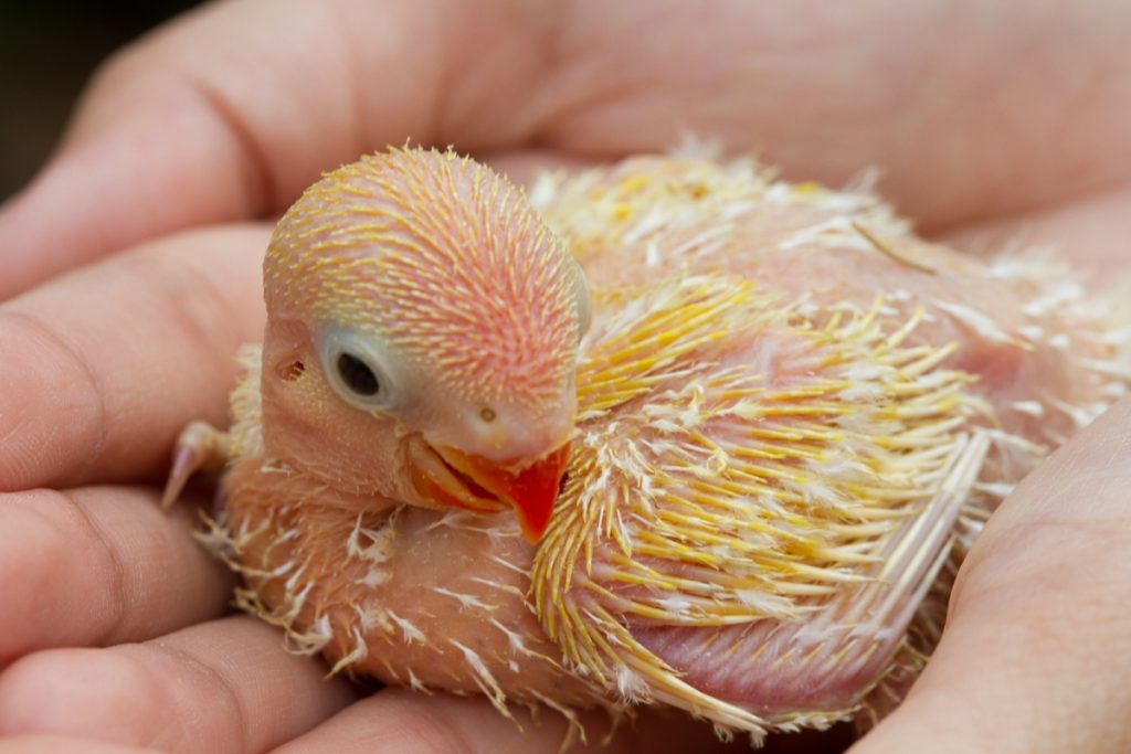 Новорожденные попугаи развиваются очень быстро. Уже в трехнедельном возрасте их тела полностью покрыты перьями. Но в первые 14 дней жизни они очень уязвимы и абсолютно беспомощны.
