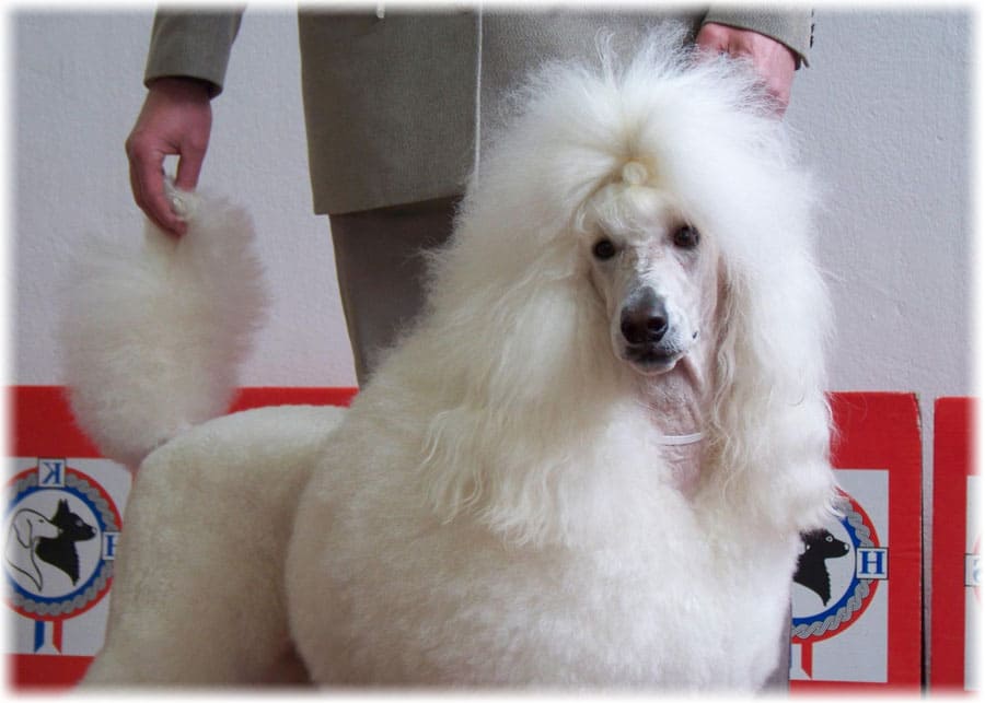 Пудель идеальная порода для тех, кому нравится экспериментировать с внешностью. Он может похвастаться самым большим разнообразием причесок и стрижек. А вьющуюся шерсть при желании можно заплести в шнуры.