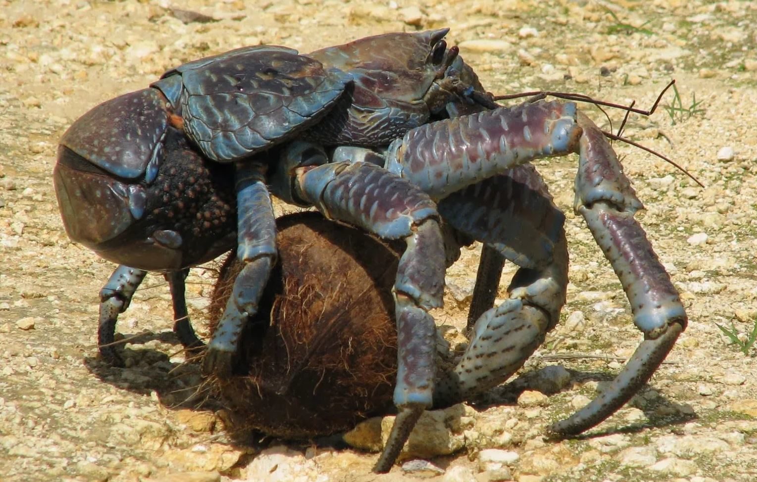 Своё название он получил из-за того что питается кокосами, падающими с пальм. Пальмового рака-отшельника часто путают с крабом из-за больших размеров.