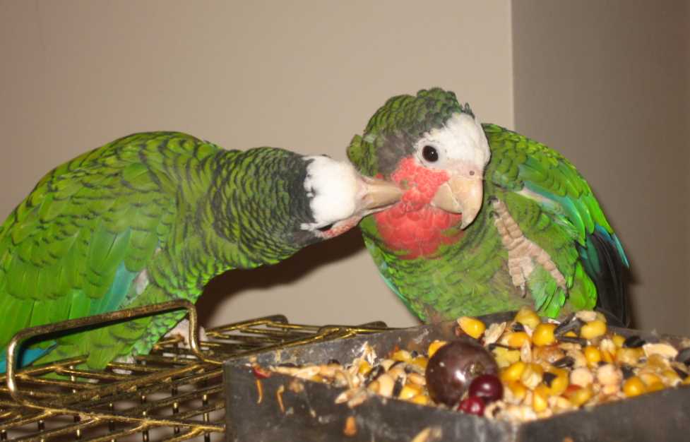 - Дайте паре адаптироваться, познакомиться поближе. В этот момент между партнерами могут возникать стычки за корм, поэтому установите каждому свою емкость с едой. Если отношения не налаживаются, не ждите, а верните попугая и повторите попытку с новым партнером.