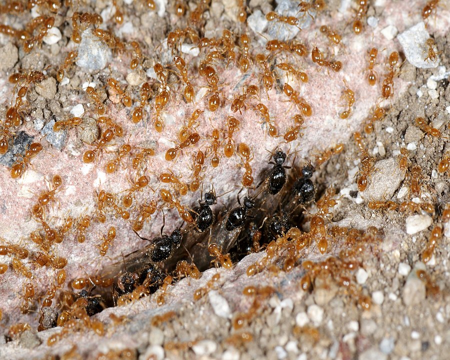 Роение у Solenopsis. Вот так время от времени масса крылатых особей покидает гнездо. Они спариваются во время полета, затем самец погибает, оплодотворенные самки разлетаются и поодиночке основывают новые гнезда