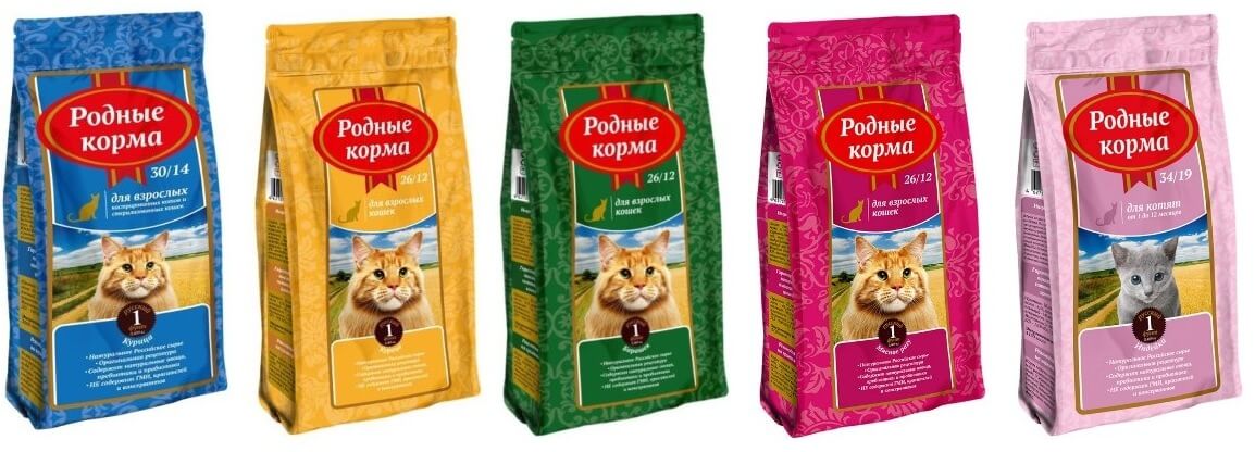 Консервы «Родные корма» изготавливают так: после обработки готовые мясо стерилизуют и закатывают в металлические баночки, предварительно залив желе или соусом. Сухие кусочки — методом экструзии. Отмеренную порцию компонентов высыпают в воду, доводят до состояния жидкой кашицы, выливают её в экструдер (аппарат), нагревают, а затем выдавливают из аппарата. В процессе запеченная кашица нарезается на небольшие гранулы и помещается в сушилки, где из кусочков удаляется практически вся вода.