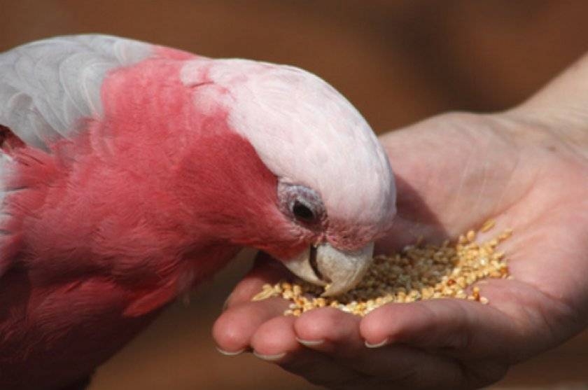 Жителю тропических лесов нужна разнообразная пища. В домашних условиях попугаев принято кормить специализированными зерновыми смесями. Более половины дневного рациона должно приходиться на сухое питание – злаки и семена. Для розового какаду подойдут корма, в составе которых минимум жирных компонентов. Эта птица склонна к ожирению, поэтому за ее диетой нужно следить тщательно.