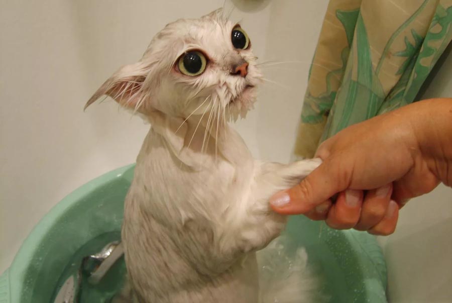 Чтобы приучить животное к купанию, желательно делать это с детства. Чтобы котёнок привык к воде и к мытью, нужно не забывать про длительность купания. Приучить питомца к ванной можно, если наливать малое количество воды или использовать слабый напор душа.