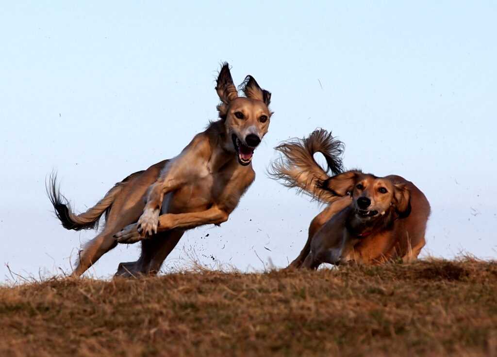 Тренировать охотничьи навыки лучше всего в паре с опытной собакой – она будет «делиться опытом». Если в год салюки не проявляет себя, не стремится преследовать добычу, то дальнейшее обучение считается нецелесообразным, собака признается непригодной к охоте.