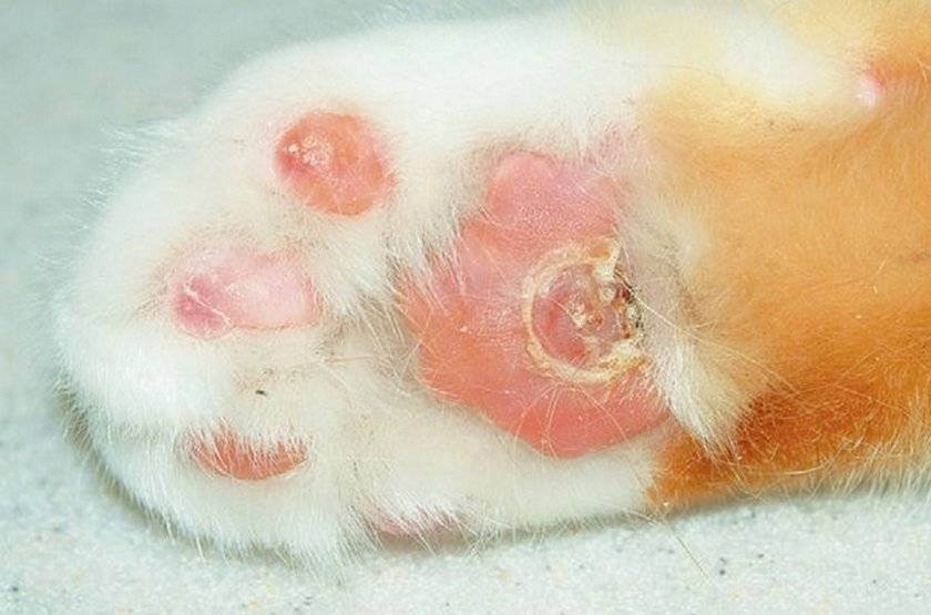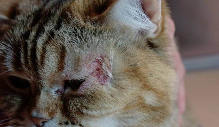 Из прыщиков может начать вытекать гной — значит, процесс зашёл далеко, и страдающему коту срочно нужна помощь.