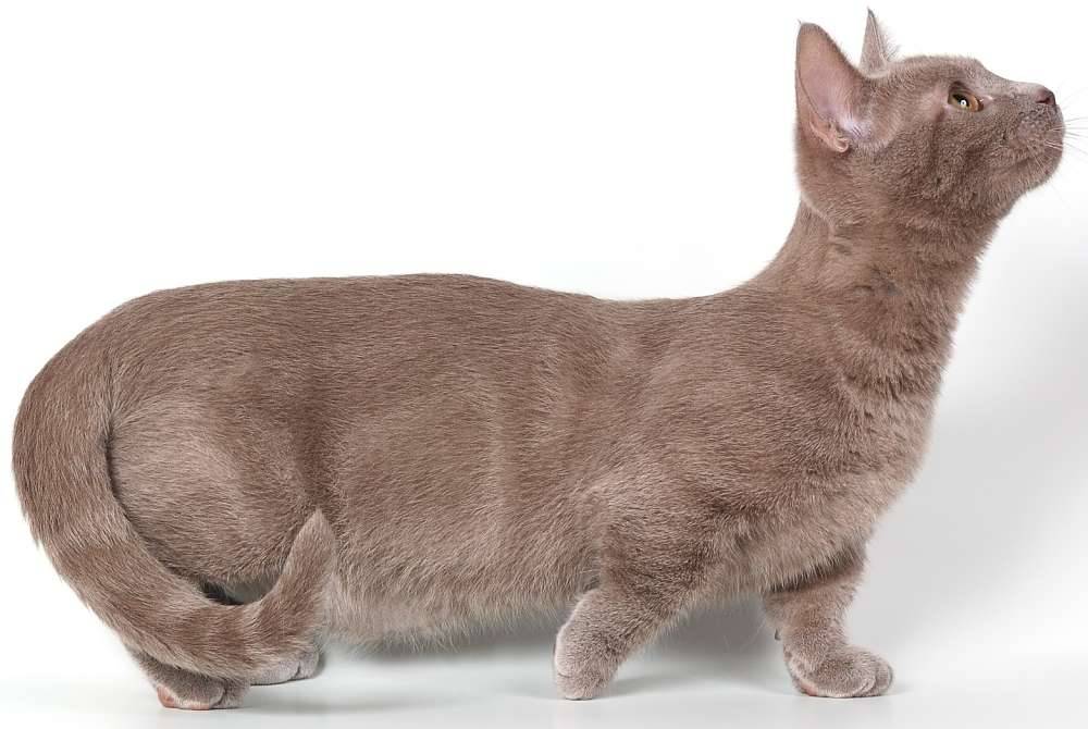 Сведения о странных коротколапых кошках появлялись еще в 19 веке. Ученые получили возможность изучить отдельные особи, и выяснилось, что лапки, короче обычных в 2-3 раза, – это результат естественной мутации. Исследования показали, что такое строение не несет никакой опасности для животного и не приводит к опасным заболеваниям, поэтому с 1994 года развитие породы происходит под надзором TICA.