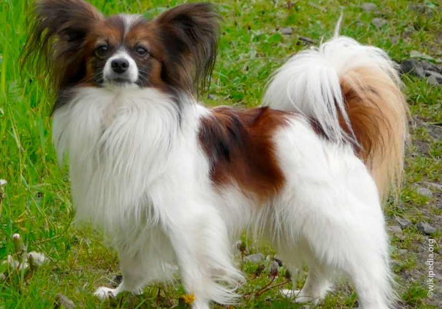 Это миниатюрные элегантные собачки ростом 20 – 27 см, весом 2 – 4 кг. Они впервые появились во Франции, где стали фаворитами при королевском дворе. Отличительный внешний признак папильона – крупные, прямые, чуть расставленные в стороны уши с длинными очёсами. По форме они напоминают крылья бабочки, отсюда название papillon, в переводе с французского – бабочка.