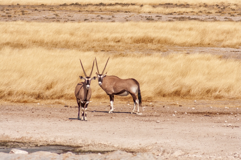 Фауна пустыни Намиб немного более разнообразна. Самое распространенное животное пустыни – сернобык или более известное название орикс антилопа, воплощение выносливости и скромности. Именно поэтому сернобык разместился на гербе Намибии.