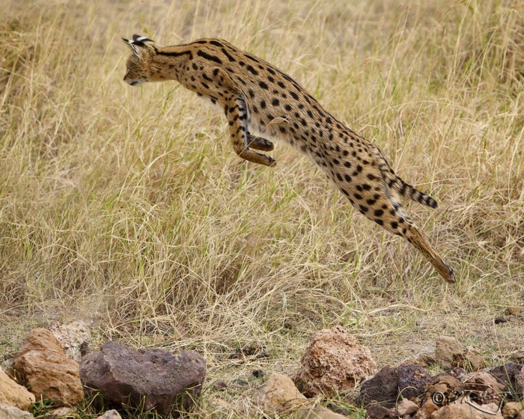 Дикие звери легко ловят птицу на лету, так как длинные задние лапы позволяют оттолкнуться от земли на 3 метра. Это захватывающее зрелище!