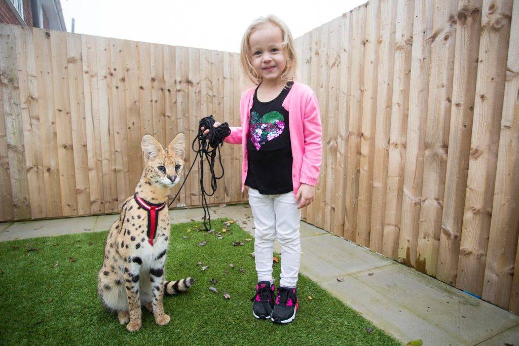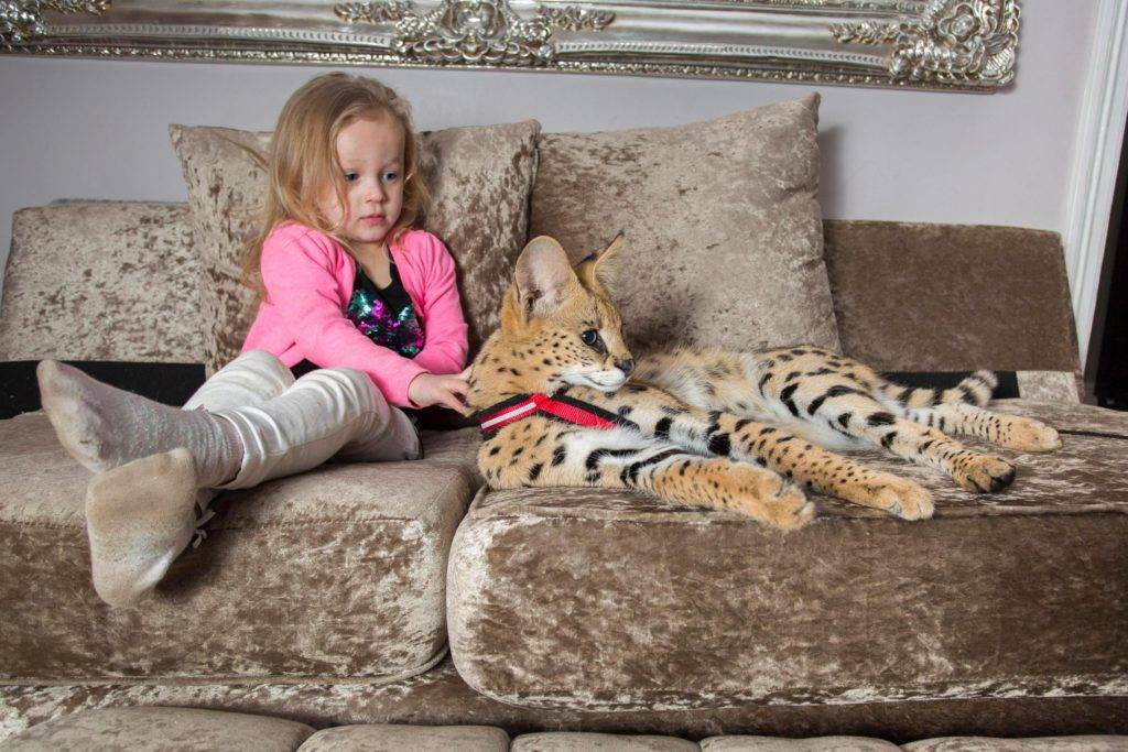 Нельзя оставлять с сервалом маленьких детей. Дикая кошка не станет терпеть, если навязчивый ребёнок будет дёргать её за хвост, уши, лапы. Сервал обязательно пустит в ход когти и зубы, а сам станет панически бояться маленьких детей, так как будет чувствовать от них угрозу. Поэтому лучше не брать сервала в дом с детьми младше 7–10 лет. Если ребёнок будет правильно обращаться с питомцем, сервал будет преданным и ласковым другом.