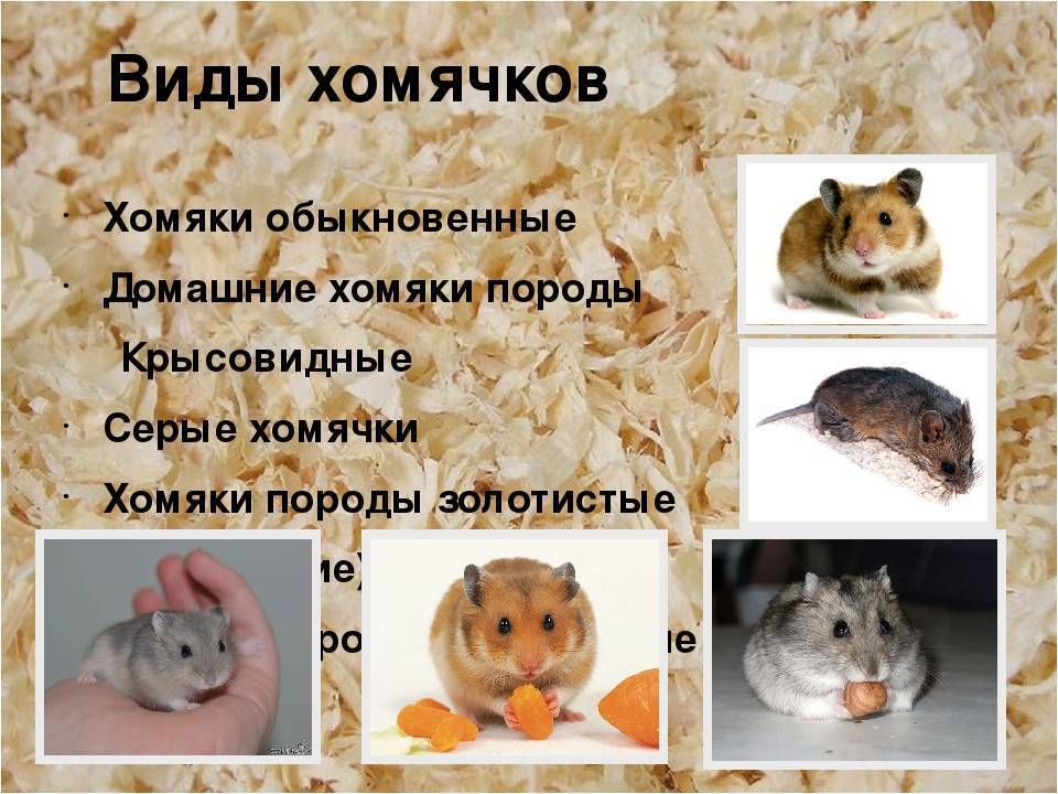 Существует несколько распространенных видов этих животных, немножко отличающихся размером и окрасом шерстки. Самым крохотным является хомячок Роборовского с размерами тела до 6 см, а обыкновенный хомяк вырастет до 30 см длиной. Среди любителей популярностью пользуются всего 3-4 вида, но их в природе всего существует до 60-и. Правильный уход за хомяком нужен вне зависимости от его происхождения.