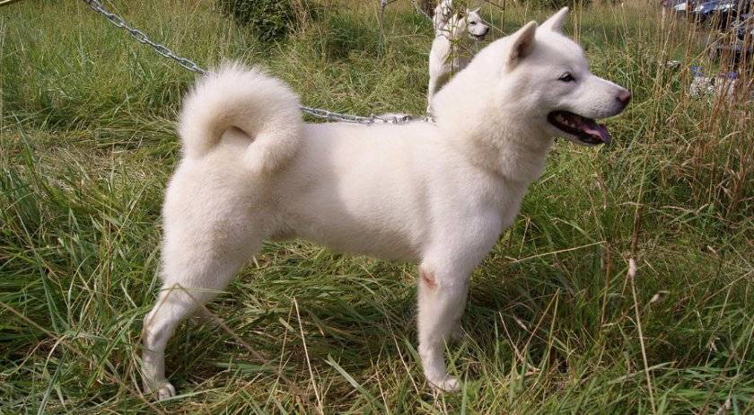 Еще одна охотничья собака из Японии — хоккайдо, выведенная местными жителями айну для охоты на крупных зверей, в частности, на медведя.