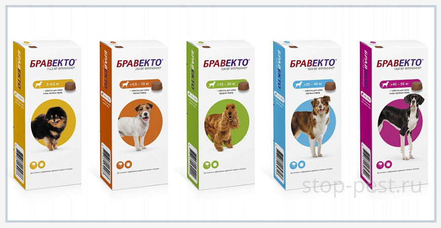 Противопаразитарный препарат подходит любым породам – мелким, средним, крупным собакам. Производитель указывает, что исследование проводилось на представителях как минимум 100 пород. Животные в каждой группе хорошо переносили средство. При этом таблетки от клещей не провоцировали специфические реакции у тех пород, которые отличаются повышенной чувствительностью к противопаразитарной обработке.