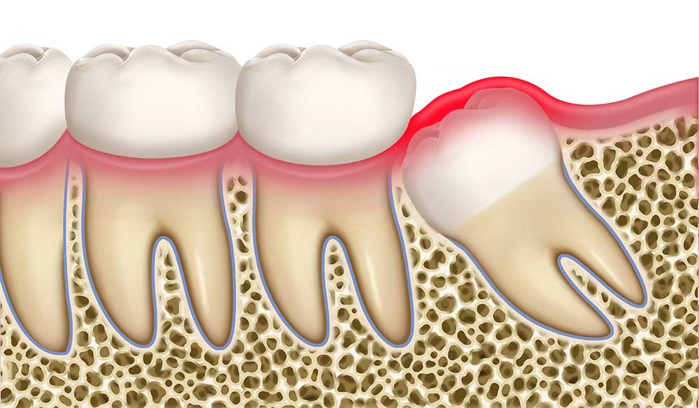 У взрослых десна отекает при прорезывании зубов мудрости. Если при этом не повышается температура и нет сильной ноющей боли, то можно просто ждать прорезывания. При ухудшении общего состояния нужно записаться к стоматологу-хирургу для иссечения воспаленных тканей или удаления восьмерки.