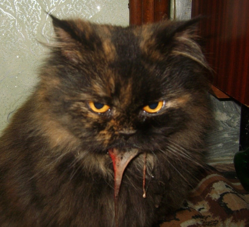 Так, при кислых катарах каловые массы пенистые из-за обильного газообразования – гремящее бурление в кишечнике слышно на расстоянии. Все это сопровождается периодической разлитой болью живота из-за спазма мускулатуры – кошка в это время сильно мяукает, напрягает брюшную мускулатуру и ведет себя довольно беспокойно.