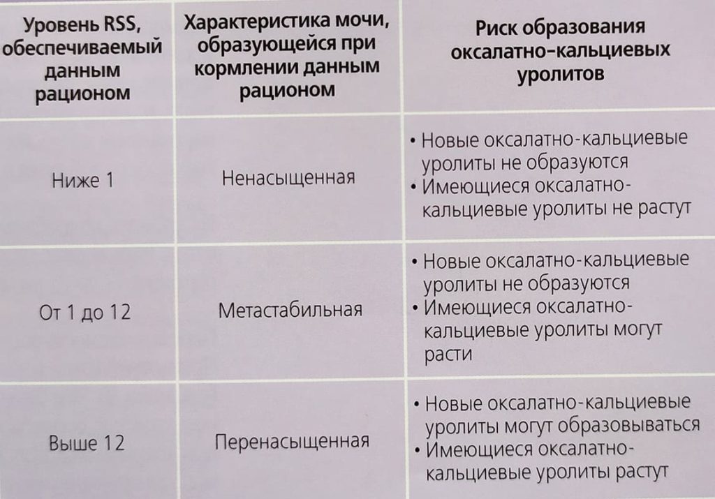 Для оценки риска образования уролитов в мочевой системе пациента каждое из них имеет особое значение. Выше RSS мочи ‒ выше риск образования кристаллов, а при низком RSS опасность образования уролитов становится менее значимой.