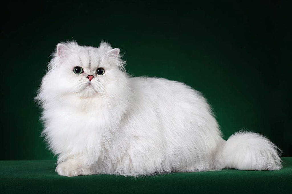 - Белая шиншилла. Удивительно красивое животное с зелеными или голубыми глазами и светло-серой шерстью. Остевые волоски у таких кошек настолько светлые, что они полностью теряются на фоне подшерстка.