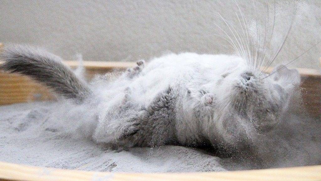 - Несколько раз в неделю нужно устраивать «пылевые ванны» для питомца. С этой целью приобретают специальную купалку и вулканическую пыль. Для профилактики кожных заболеваний в нее добавляют медицинскую серу. Такая процедура хорошо очищает мех и снимает стресс. Мыть зверька в воде строго запрещено, т.к. может простудиться и умереть.