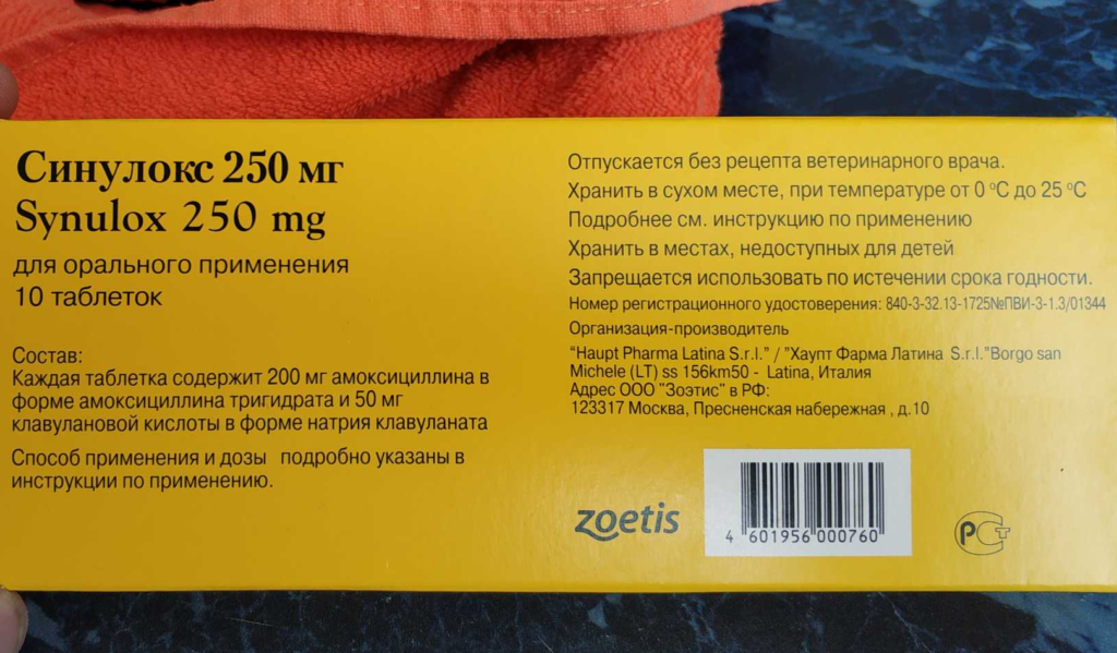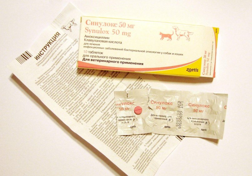 Торговое название лекарства – «Synulox». Это средство нового поколения ветеринары назначают заболевшим кошкам и собакам, а также крупному рогатому скоту.