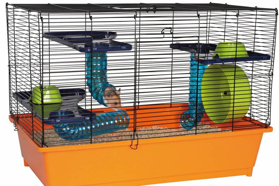 Клетку для золотистого зверька лучше приобретать средних размеров, чтобы в ней вместился домик для сна, кормушка и поилка. Учитывая, что хомячки любят прятаться, играть, лазить и бегать следует обеспечить питомца «парком развлечений», поместив в клетке качельки, колесо для бега и различные коряги.