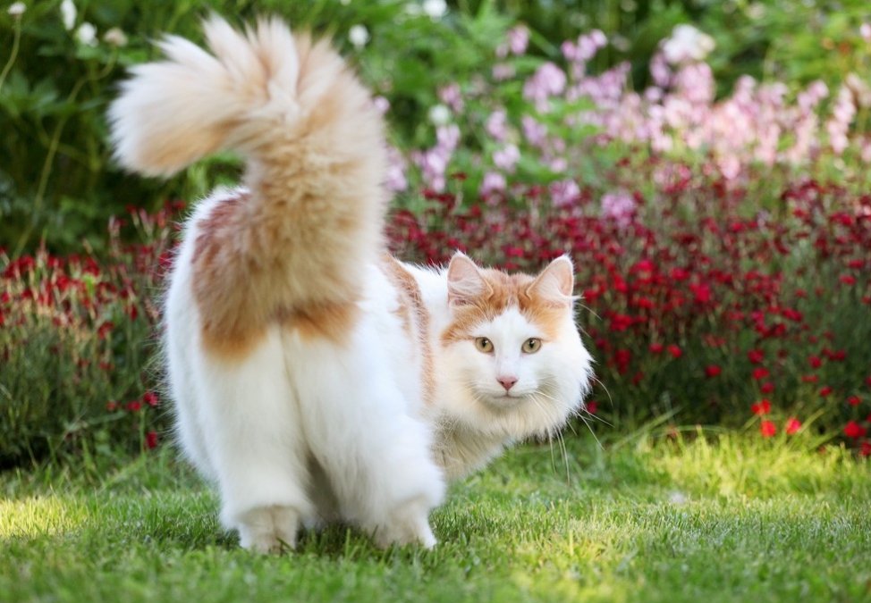 - Длинный пушистый хвост, который помогает кошке балансировать, когда она перепрыгивает через забор, подоконник или перила высотного балкона.