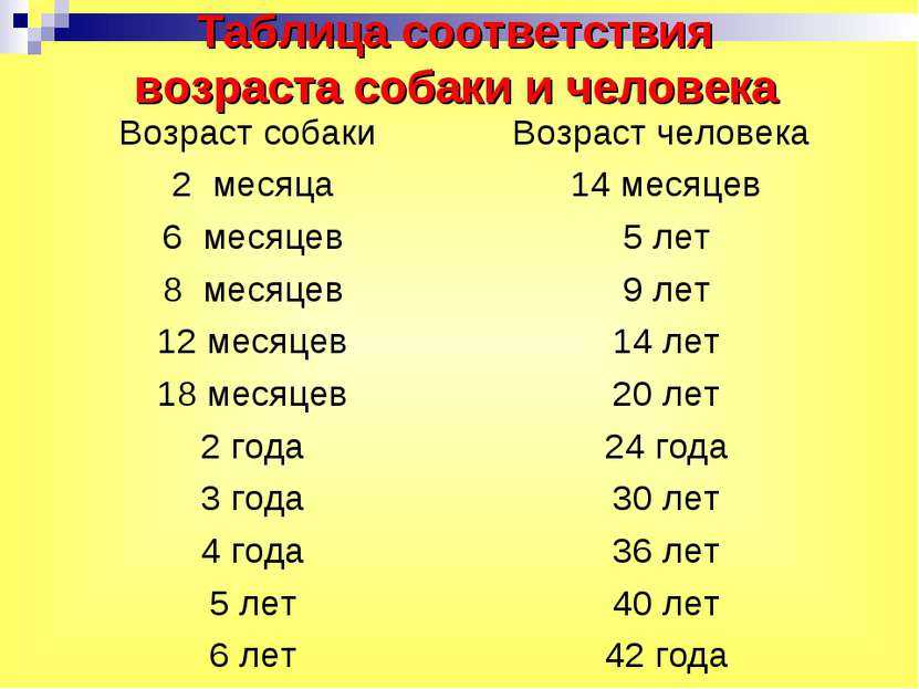 Наиболее простая и общепризнанная шкала перевода собачьего возраста в человеческий, которую можно найти на просторах интернета: 1 год жизни животного равен 7 человеческим. То есть годовалому псу соответствует семилетний возраст человека. Такая точка зрения не совсем верна. Например, в годовалом возрасте собака готова к воспроизведению потомства, чего нельзя сказать о ребенке.