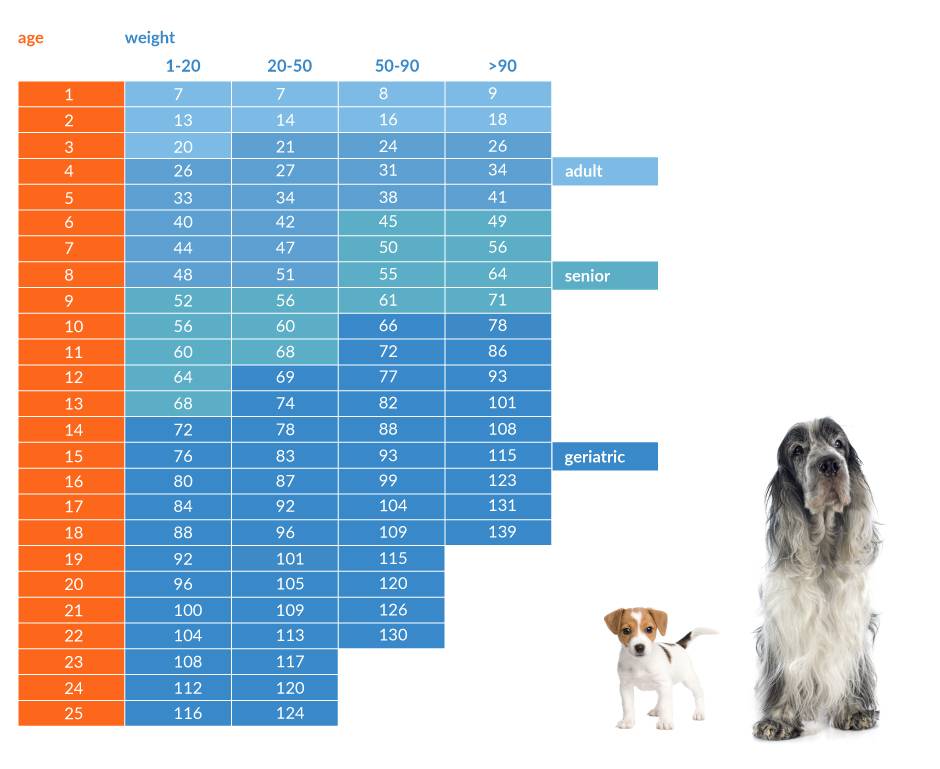 Далее эта разница постепенно уменьшается, с 6 до 9 лет такой коэффициент разрыва становится равным 7, как и принято считать. Например: 9-летний возраст собаки соответствует 63 годам человека.