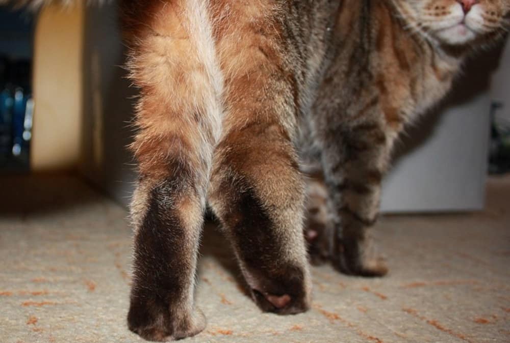 На первый взгляд может показаться, что коленки у животных выгибаются в обратную сторону, однако на самом деле это не так. Назад гнутся локтевые суставы на передних лапах, а колени сгибаются вперед. То, что многие принимают за коленки, на самом деле является пяткой – ступни кошек очень длинные. Колени же находятся на уровне низа живота и часто скрыты густой длинной шерстью.
