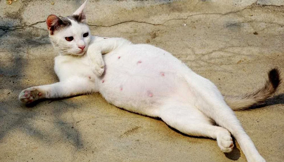 Если ваш кот позволяет вам гладить его живот, вы можете почувствовать их. Это будут небольшие шишки, которые находятся на одинаковом расстоянии друг от друга. Они могут быть немного чувствительными, поэтому не удивляйтесь, если кот почувствует щекотку и попытается свернуться вокруг вашей руки (берегитесь царапин!).