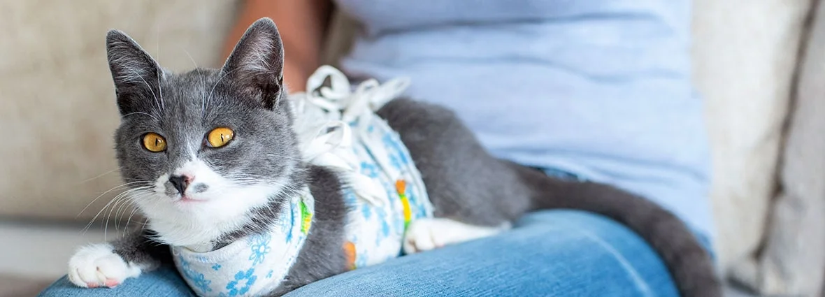 - Необходимо одевать послеоперационную попону для защиты швов от зализывания и расчесывания. Предотвращает попадание грязи или туалетного наполнителя в рану. Рекомендуется приобрести попону из прочного, но воздухопроницаемого материала. Завязывать плотно, но не перетягивая. Попона не должна стеснять движений.