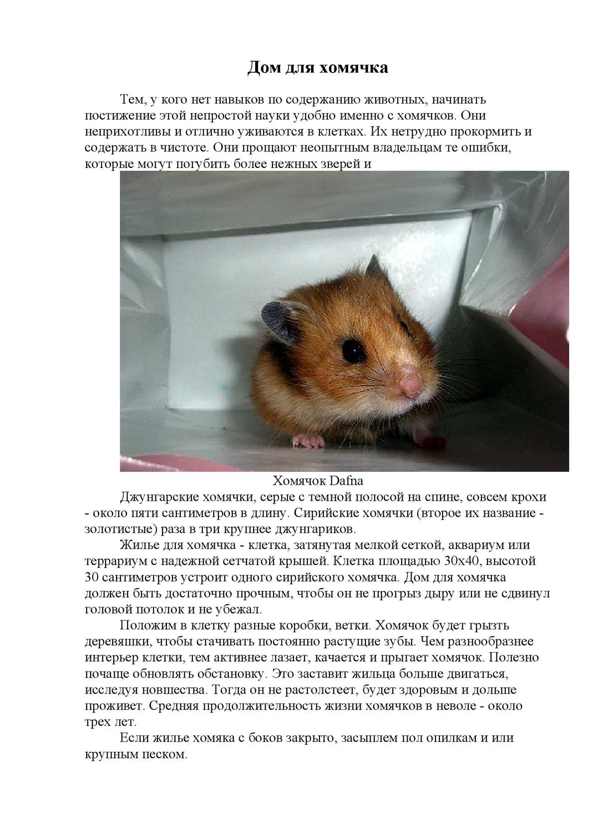 Несмотря на то, что принято считать джунгарских хомяков довольно неприхотливыми животными, во время ухода за ними важно придерживаться определенных правил. Долгая и счастливая жизнь питомца зависит от качества условий, в которых он находится. Решив приобрести грызуна подумайте, сможете ли вы обеспечить ему должный уход, а также оградить от стрессов