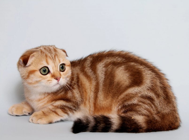- Уши у малышей загнуты не сразу — они рождаются с прямыми ушками, которые начинают загибаться только к 3-4 месяцам. Тех представителей вида, у которых ушки не загнулись, называют скоттишстрайт, (прямоухий, соответственно).