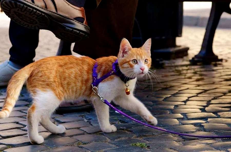 Большинству кошек нравится гулять на шлейке, а не на поводке