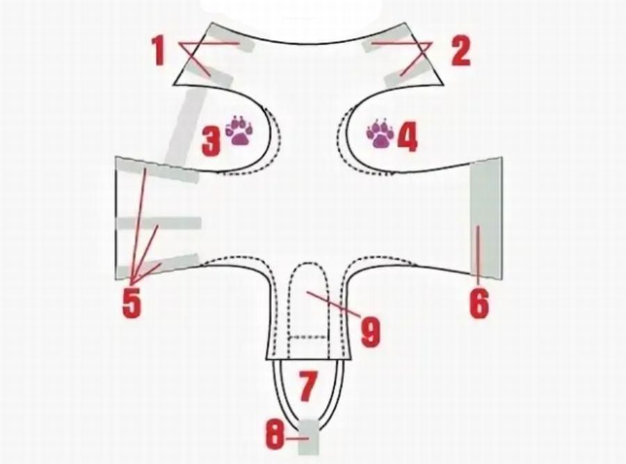 После этого, можете начать переносить вашу выкройку на ткань. Итог шлейки обязательно порадует и вас, и вашего питомца.