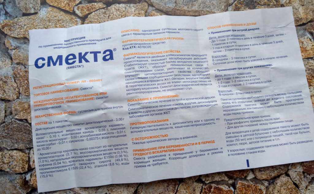 Смекта при использовании по инструкции не оказывает влияния на кишечную моторику, не усваивается организмом и выводится в неизменном виде.