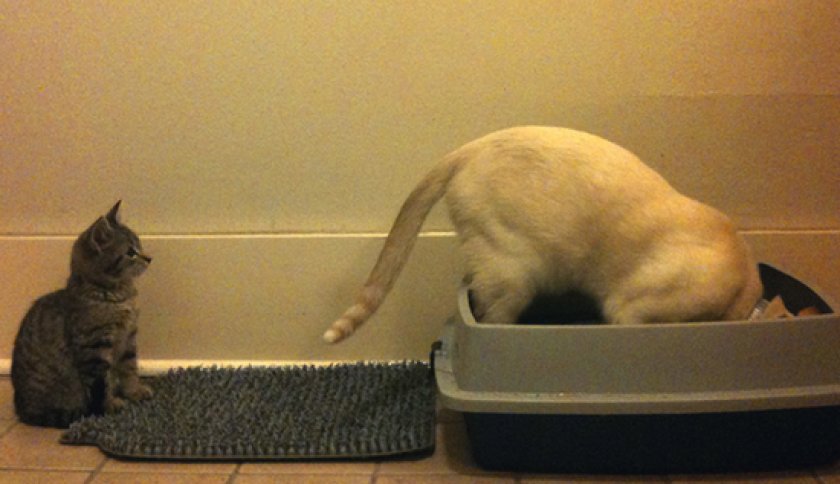 Как уже говорилось, собака может быть недовольна присутствием в квартире других животных, в частности — кошек и котов. Чаще всего так бывает, когда нового «пассажира» и уже существующих обитателей дома не познакомили должным образом, не дали им возможности для адаптации. Таким образом, собака будет устранять чужака со своей территории, его каловые метки.