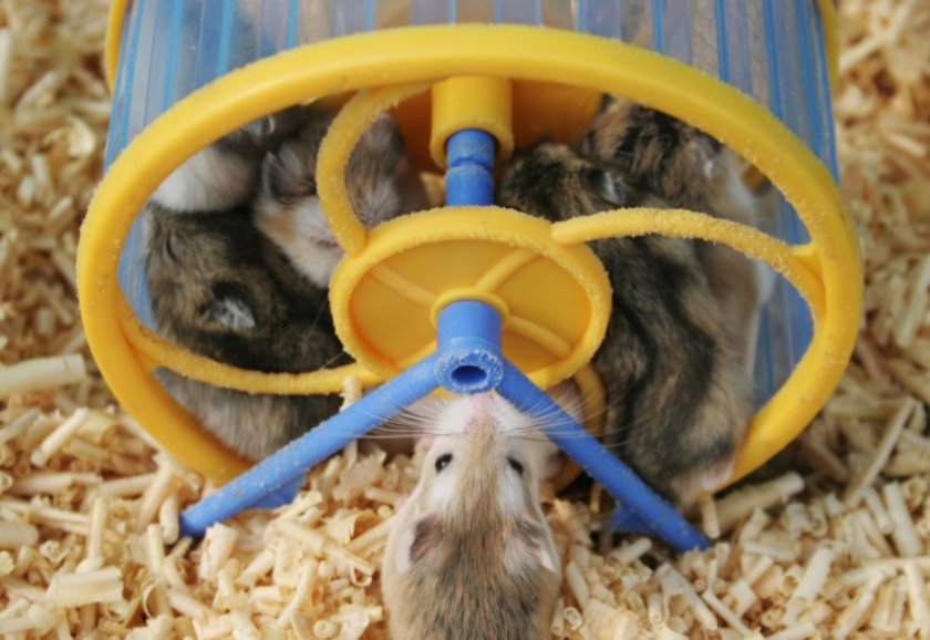 Чтобы ваш любимец не скучал, установите для него беговое колесо. При этом внимательно следите за тем, чтобы передние лапки питомца не проваливались между его прутьями, поскольку это может привести к серьезной травме животного.