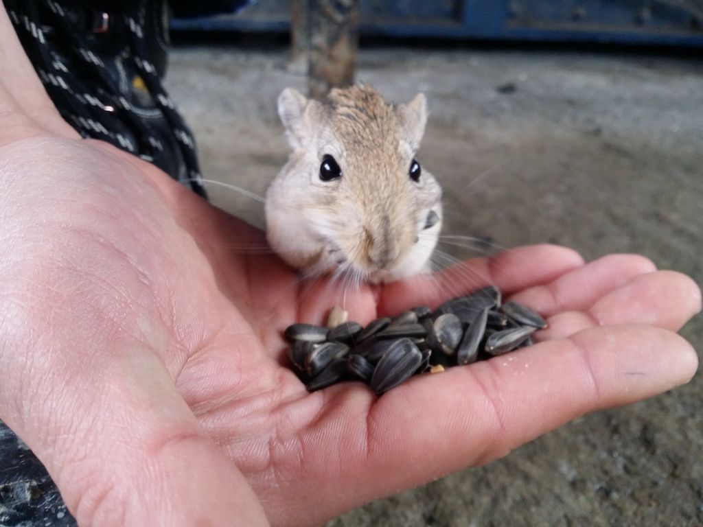 - Получая любимое лакомство с рук хозяина, песчанка в качестве благодарности может подмигнуть одним глазом;