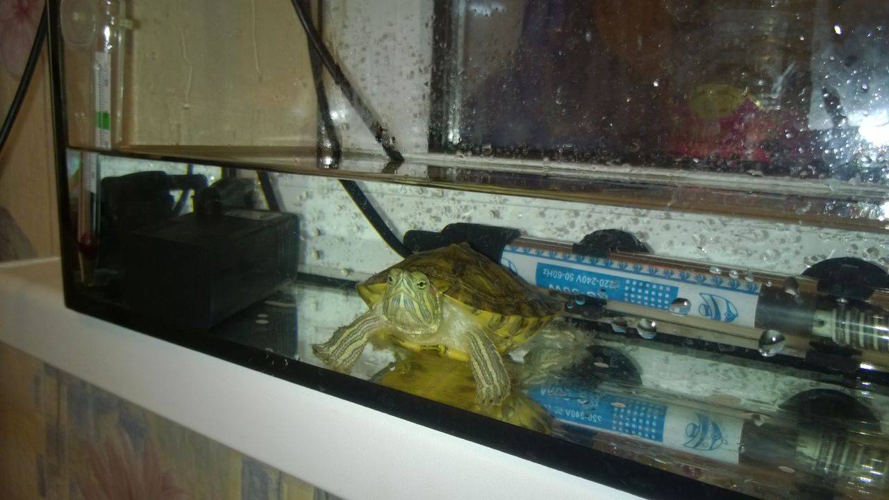 Высота воды для красноухой черепахи должна быть не менее 40см. Но часть территории аквариума должна быть мелкой, чтобы у черепахи была возможность сидеть в воде, и при этом голова у нее была над водой.