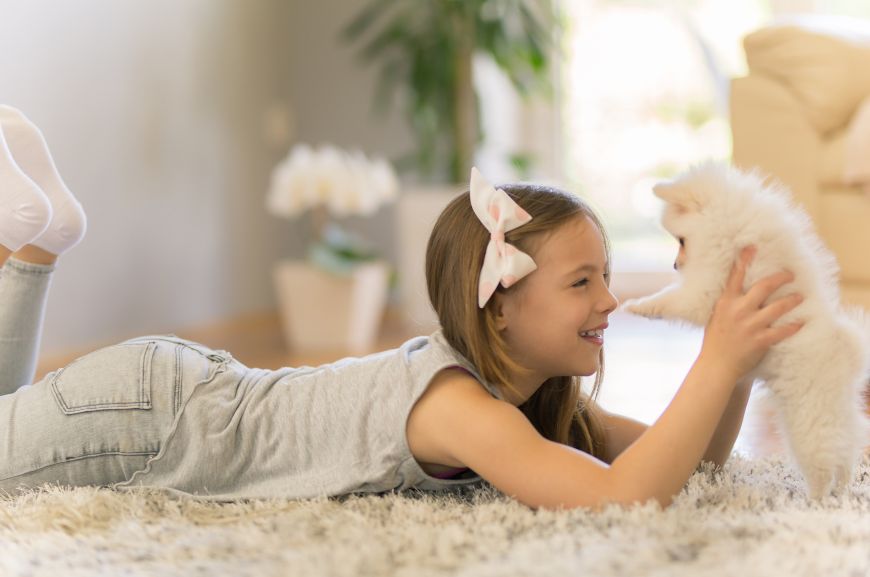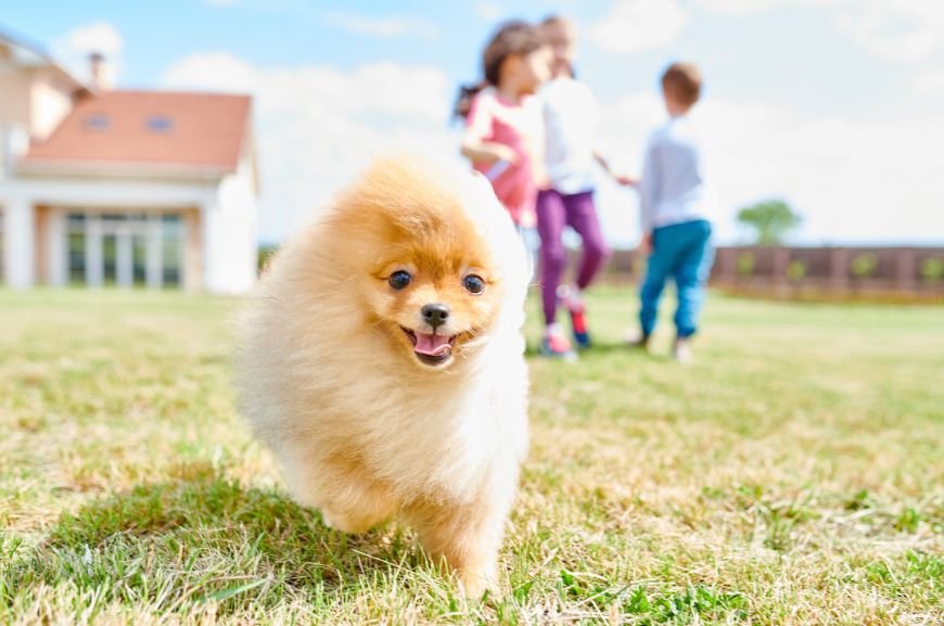 В игры с детьми померанские шпицы вступают с небольшой охотой