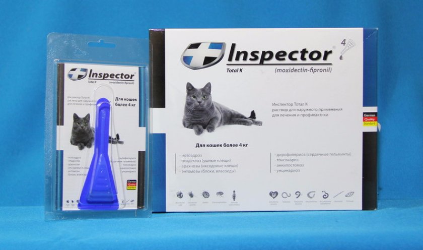 «Инспектор». Высокоэффективный препарат Инспектор для кошек убивает четырнадцать видов паразитов: наружных и внутренних. Содержит уникальную двухкомпонентную формулу из моксидектина и фипронила. Действующие вещества в комплексе практически мгновенно парализуют паразитов, и они погибают. Действует препарат «Инспектор» в течение двух месяцев.